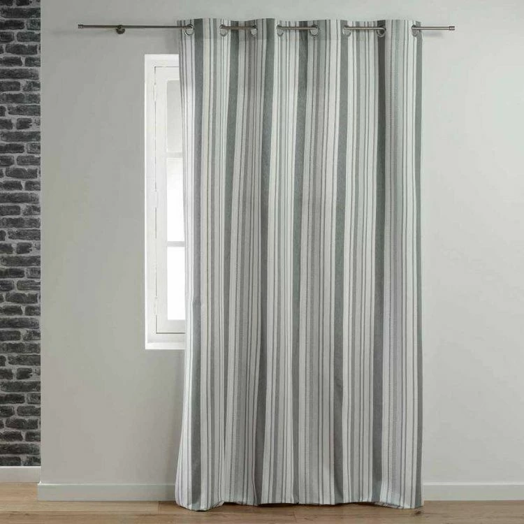 Paris Prix Rideau à Œillets Design Santorin 140x240cm Gris & Blanc
