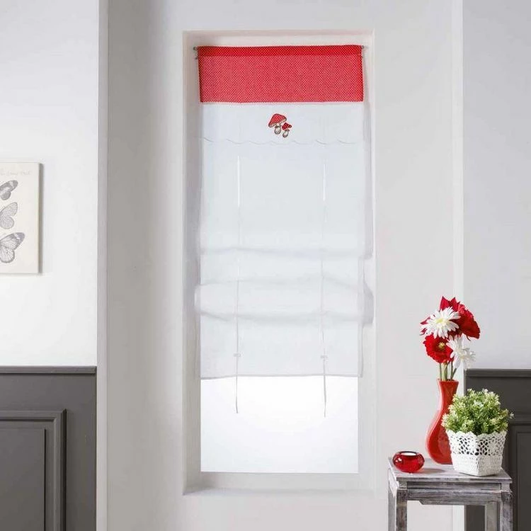 Paris Prix Store Voilage Champignons 60x150cm Blanc & Rouge