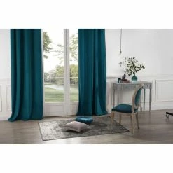 TOILINUX Lot De 2 Rideaux Occultants En Polyester Effet Velours – Bleu Canard – 140 X 260 Cm